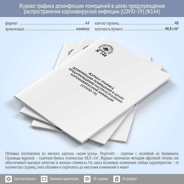 Журнал графика дезинфекции помещений в целях предупреждения распространения коронавирусной инфекции (COVID-19) (48 стр., Ж144) в Бердске купить