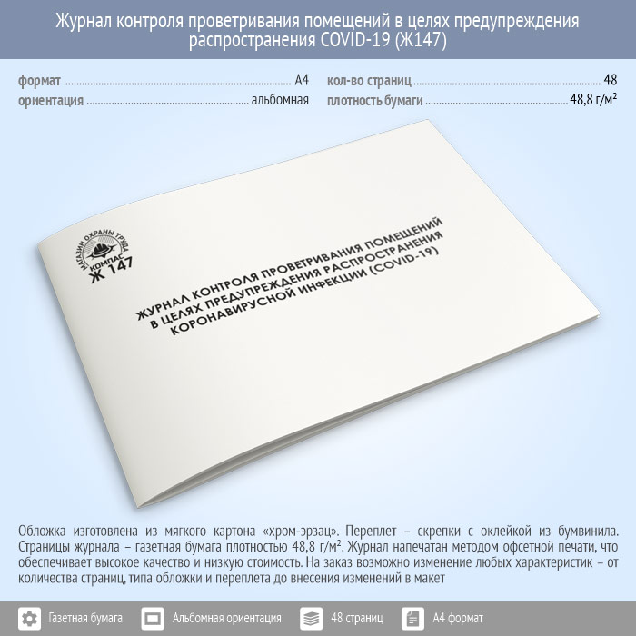 Журнал контроля проветривания помещений в целях предупреждения распространения коронавирусной инфекции (COVID-19) (48 стр., Ж147) в Бердске купить