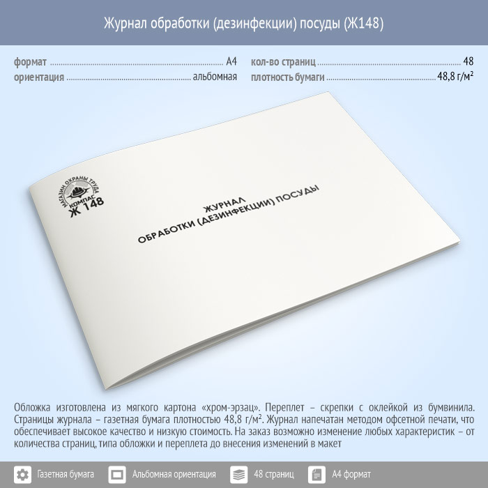 Журнал обработки (дезинфекции) посуды (48 стр., Ж148) в Бердске купить