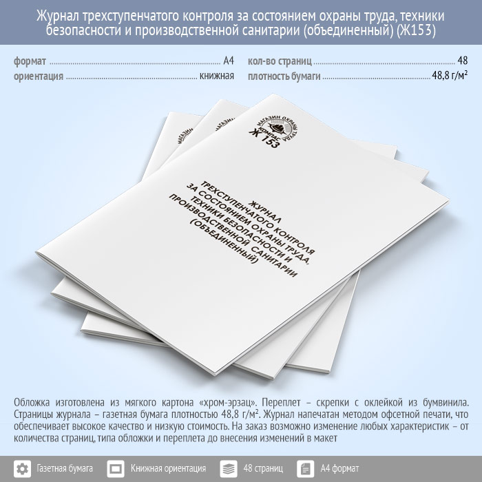 Журнал трехступенчатого контроля за состоянием охраны труда, техники безопасности и производственной санитарии (объединенный) (48 стр., Ж153) в Бердске купить