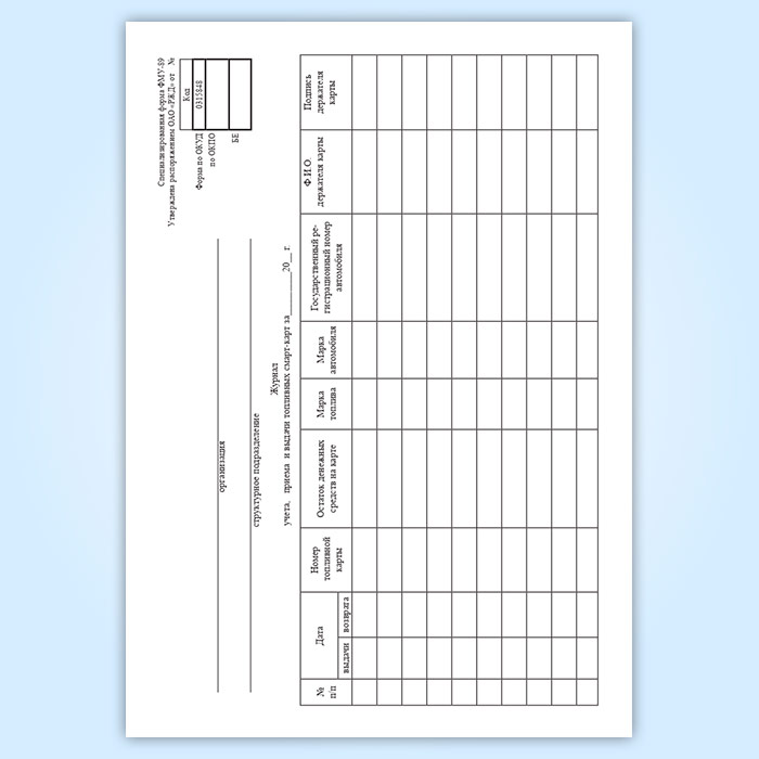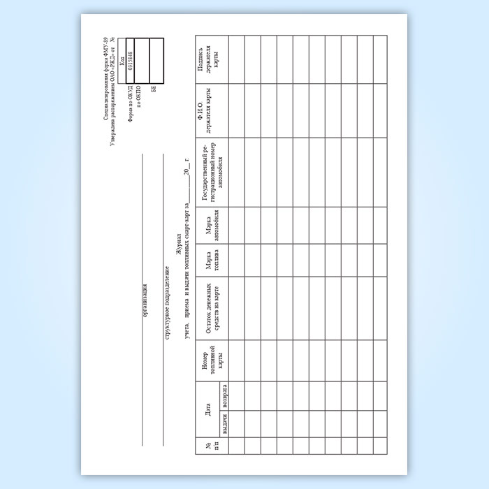 Журнал учета, приема и выдачи топливных смарт-карт в Бердске купить