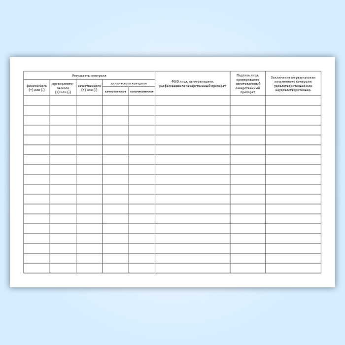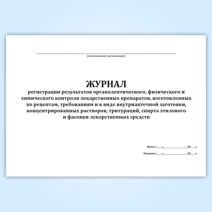 Журнал регистрации результатов органолептического, физического и химического контроля лекарственных препаратов, изготовленных по рецептам, требованиям и в виде внутриаптечной заготовки, концентрированных растворов, тритураций, спирта этилового и фасовки лекарственных средств в Бердске купить