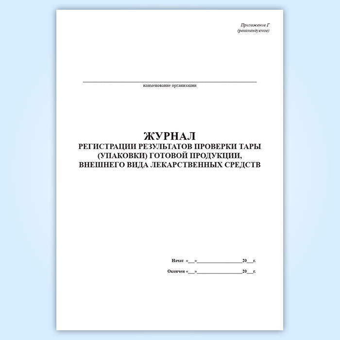 Журнал регистрации результатов проверки тары (упаковки) готовой продукции, внешнего вида лекарственных средств (форма Г) в Бердске купить