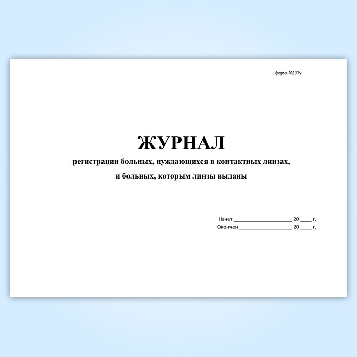 Журнал регистрации больных, нуждающихся в контактных линзах, и больных, которым линзы выданы (форма № 137/у) в Бердске купить
