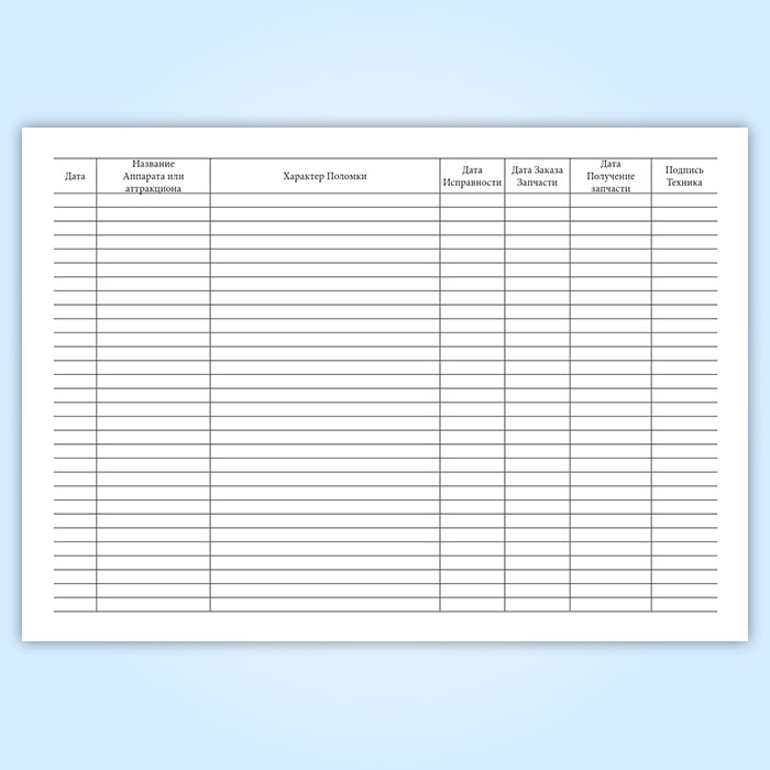 Журнал учета поломки аттракционов и игровых автоматов в Бердске купить