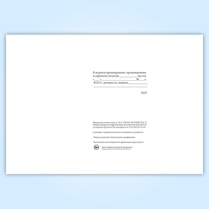 Вы получаете печатную продукцию прошнурованной и c местом для вашей печати в соответствии с действующими нормативными документами: