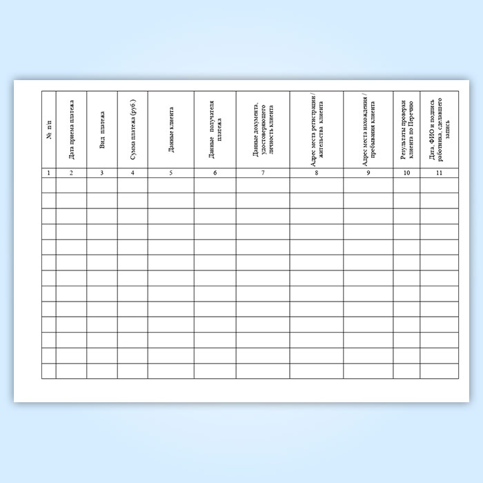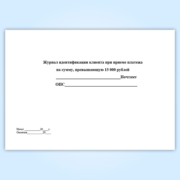Журнал идентификации клиента при приеме платежа на сумму, превышающую 15 000 рублей в Бердске купить