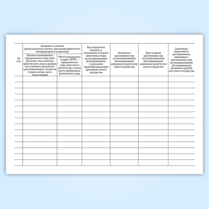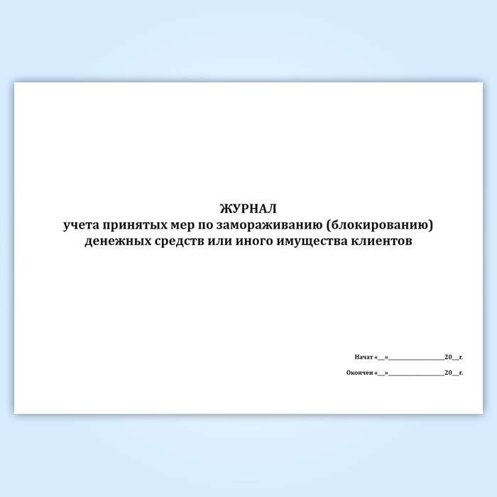 Журнал учета принятых мер по замораживанию (блокированию) денежных средств или иного имущества клиентов в Бердске купить