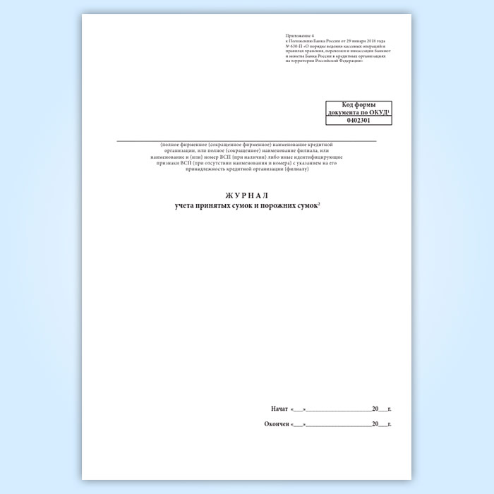 Журнал учета принятых сумок и порожних сумок (форма по ОКУД 0402301) в Бердске купить