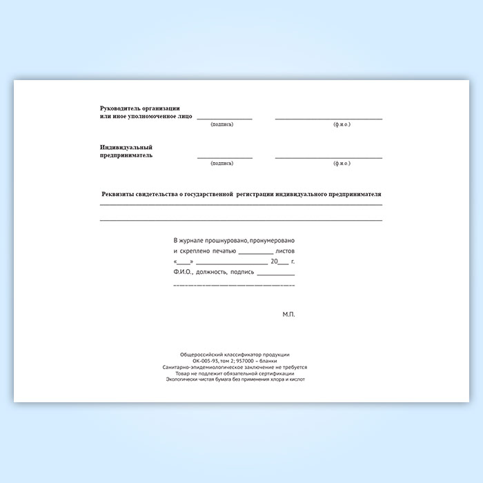 Вы получаете печатную продукцию прошнурованной и c местом для вашей печати в соответствии с действующими нормативными документами: