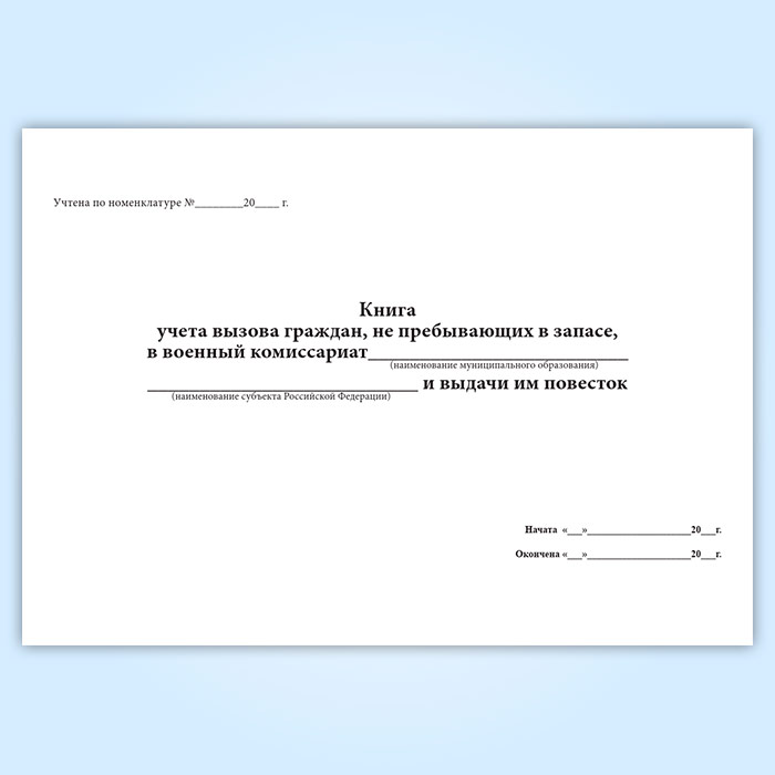 Книга учета вызова граждан, не пребывающих в запасе, в военный комиссариат и выдачи им повесток в Бердске купить