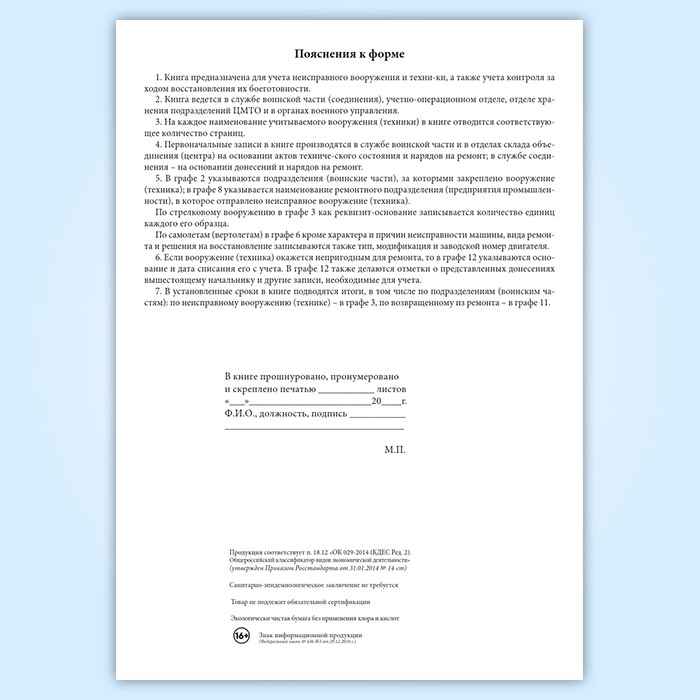 Книга учета неисправного вооружения и военной техники (форма 19) в Бердске купить
