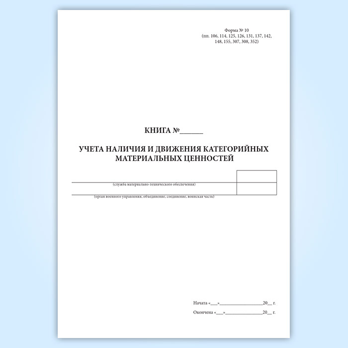 Книга учета наличия и движения категорийных материальных ценностей (форма 10) в Бердске купить