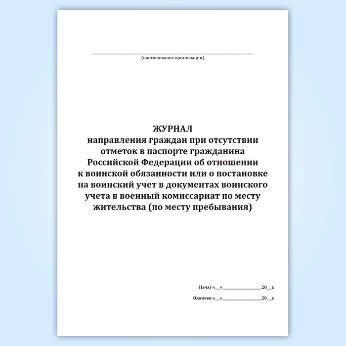 Журнал направления граждан при отсутствии отметок в паспорте гражданина Российской Федерации об отношении к воинской обязанности или о постановке на воинский учет в документах воинского учета в военный комиссариат по месту жительства (по месту пребывания) в Бердске купить
