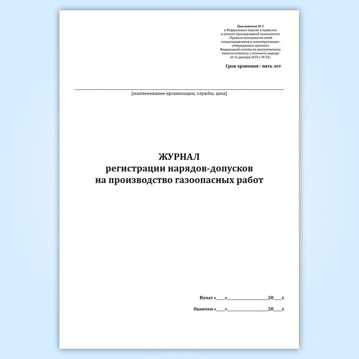 Журнал регистрации нарядов-допусков на производство газоопасных работ в Бердске купить