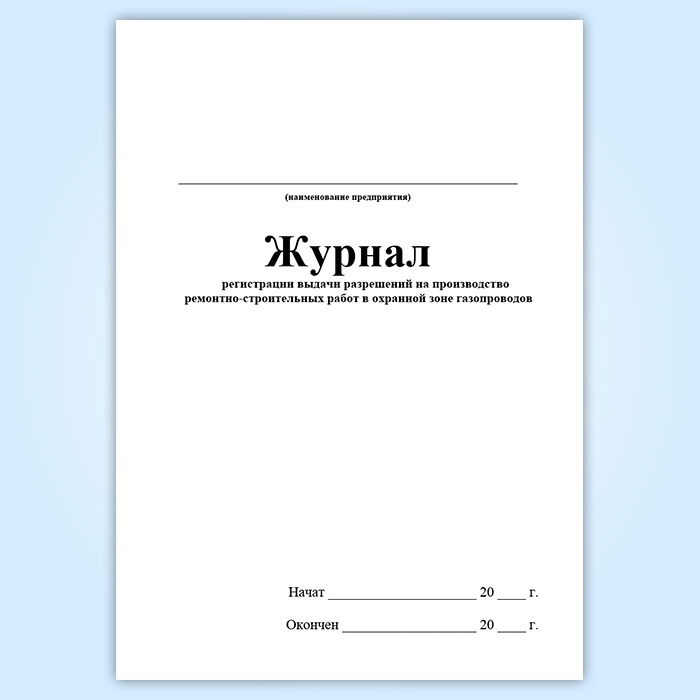 Журнал регистрации выдачи разрешений на производство ремонтно-строительных работ в охранной зоне газопроводов (ГЭГ-14) в Бердске купить