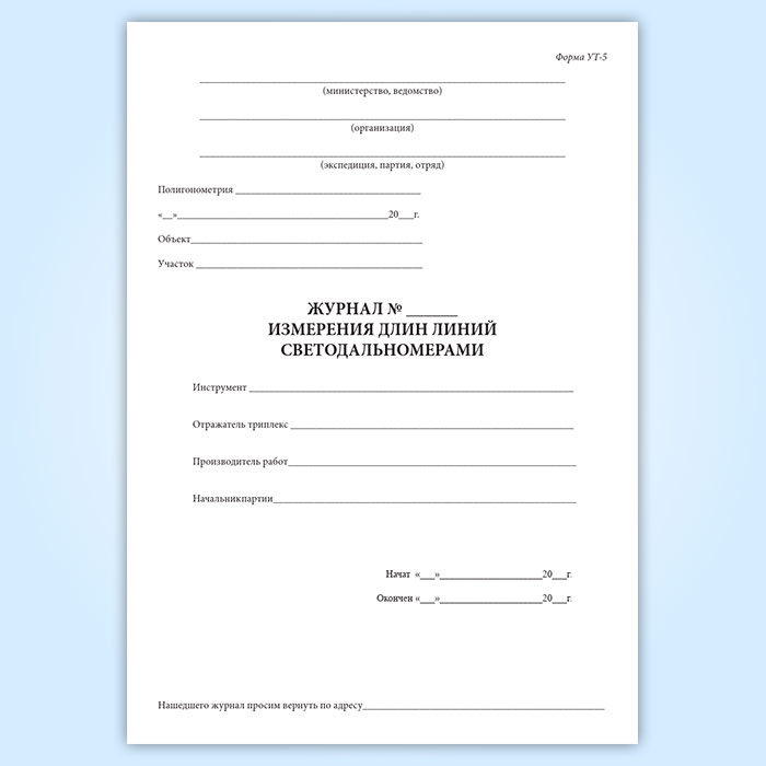 Журнал измерения длин линий светодальномерами (форма УТ-5) в Бердске купить