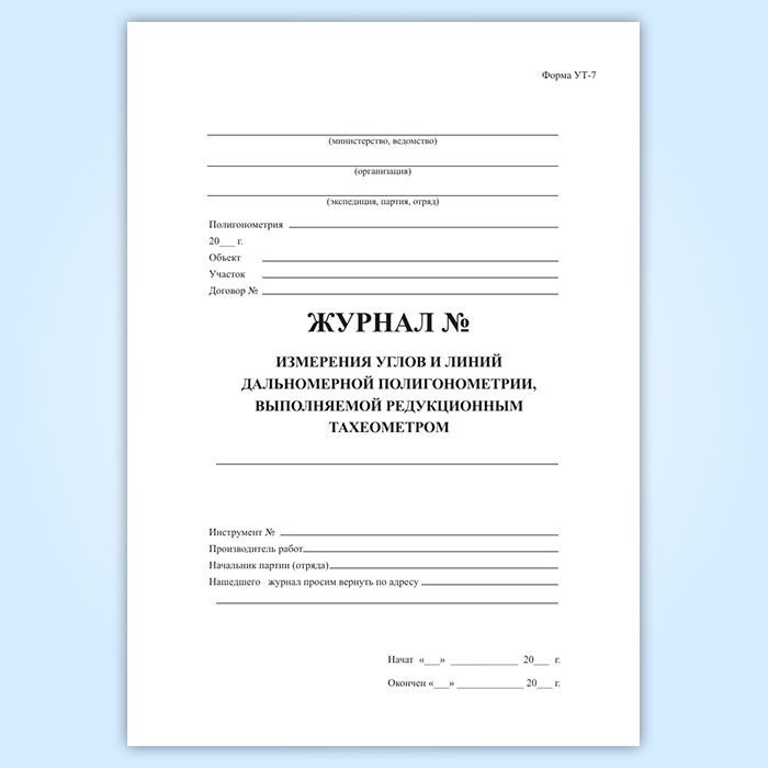 Журнал измерения углов и дальномерной полигонометрии, выполняемой редукционным тахеометром (форма УТ-7) в Бердске купить