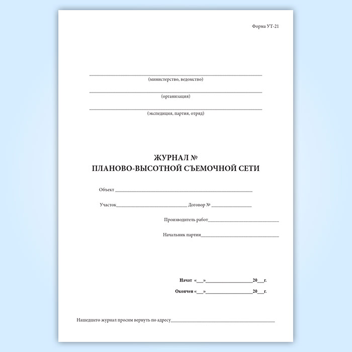 Журнал планово-высотной съемочной сети (форма УТ-21) в Бердске купить
