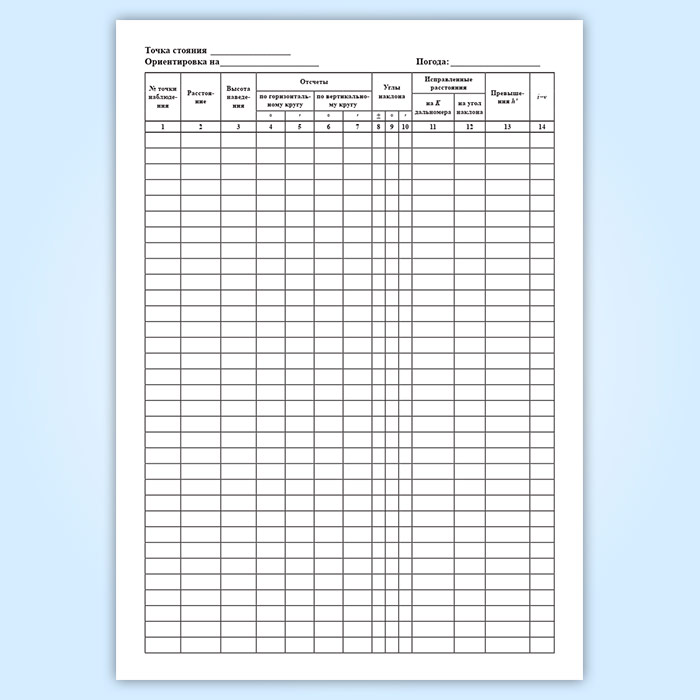 Полевой журнал тахеометрической съемки в Бердске купить