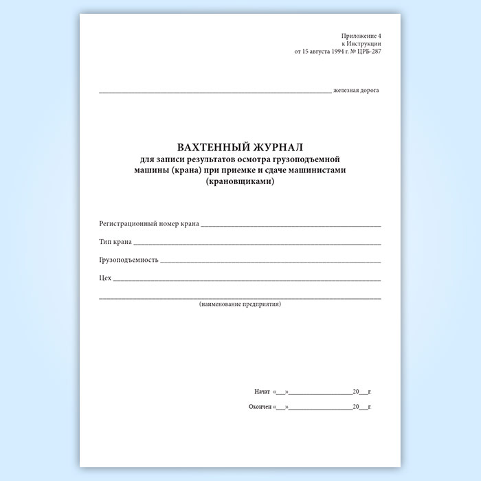 Вахтенный журнал для записи результатов осмотра грузоподъемной машины (крана) при приемке и сдаче машинистами (крановщиками) в Бердске купить