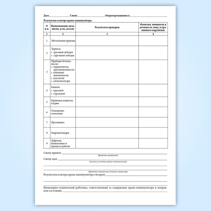 Вахтенный журнал приема-сдачи смен машинистами крана-манипулятора в Бердске купить