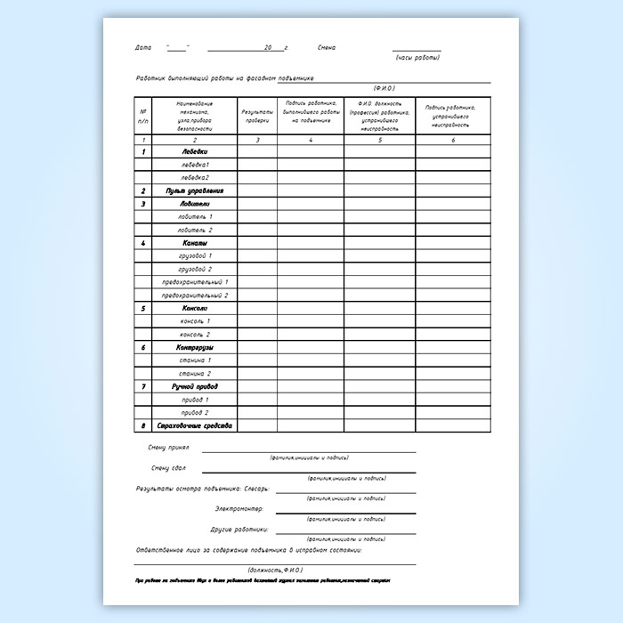 Вахтенный журнал фасадного двухподвесного подъемника в Бердске купить