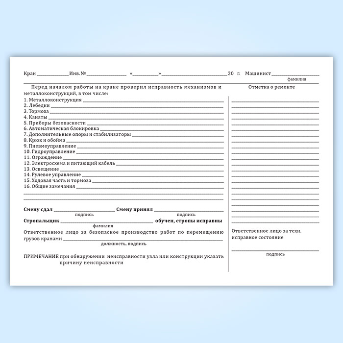Вахтенный журнал г/п крана в Бердске купить