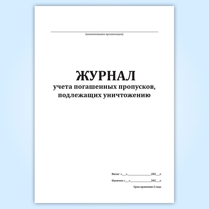 Журнал учета погашенных пропусков, подлежащих уничтожению в Бердске купить