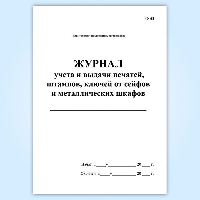 Журнал учета и выдачи печатей, штампов, ключей от сейфов и металлических шкафов (Ф-62) в Бердске купить