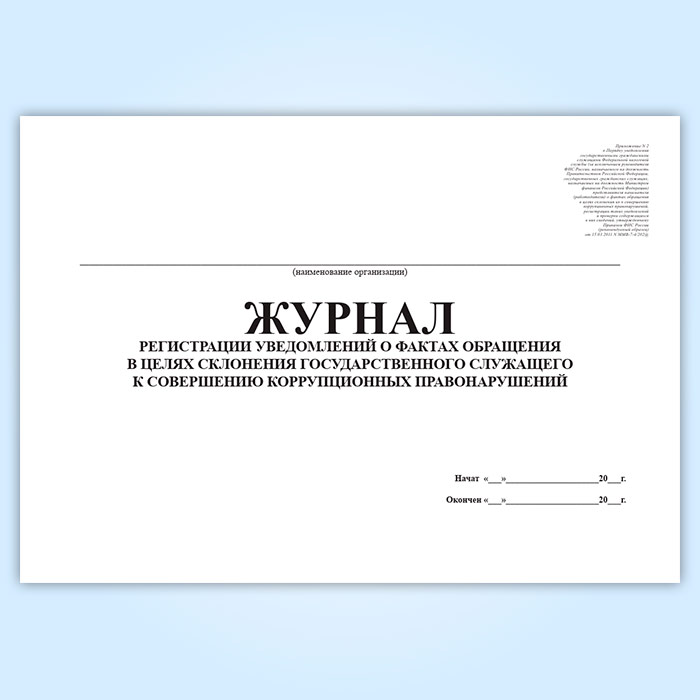Журнал регистрации уведомлений о фактах обращения в целях склонения государственного служащего к совершению коррупционных правонарушений в Бердске купить