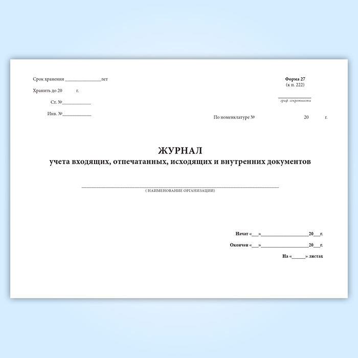 Журнал учета входящих, отпечатанных, исходящих и внутренних документов (горизонтальный) в Бердске купить
