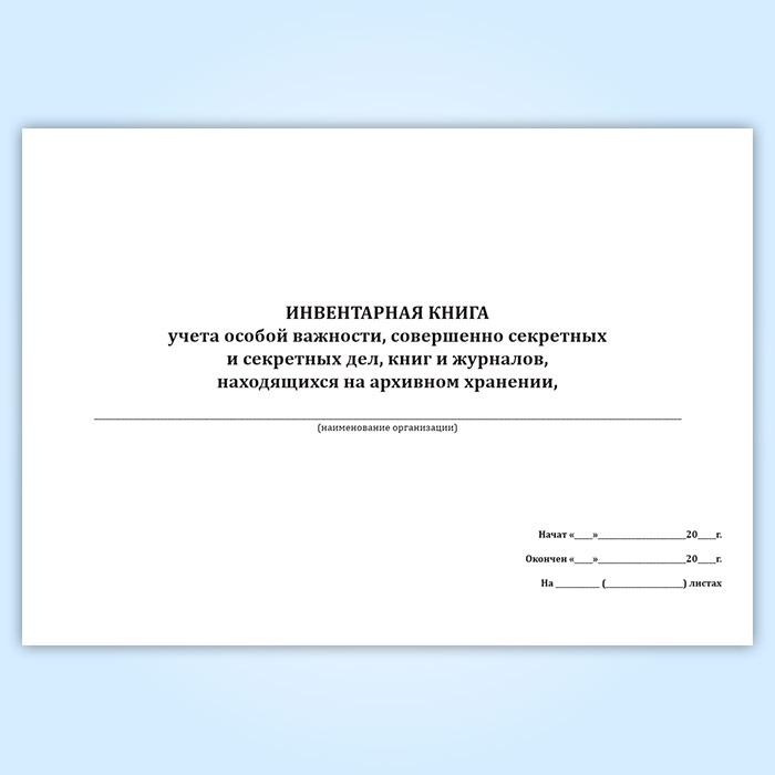 Инвентарная книга учета особой важности, совершенно секретных и секретных дел, книг и журналов, находящихся на архивном хранении в Бердске купить