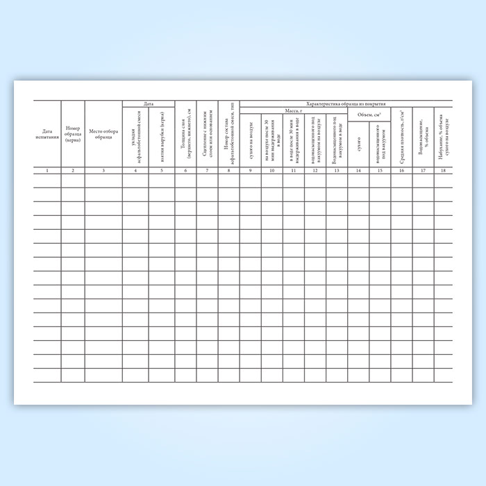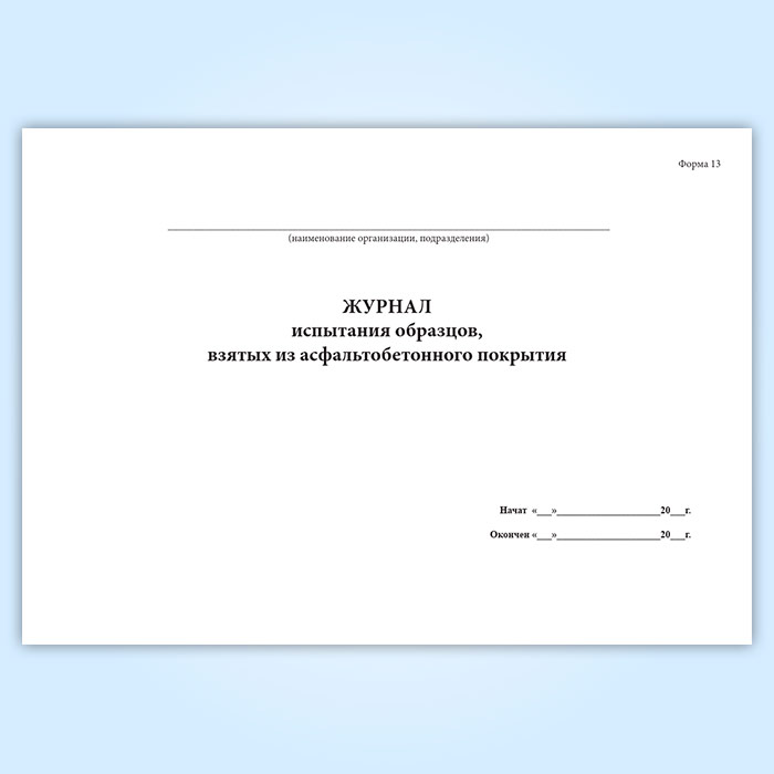 Журнал испытания образцов, взятых из асфальтобетонного покрытия (форма 13) в Бердске купить