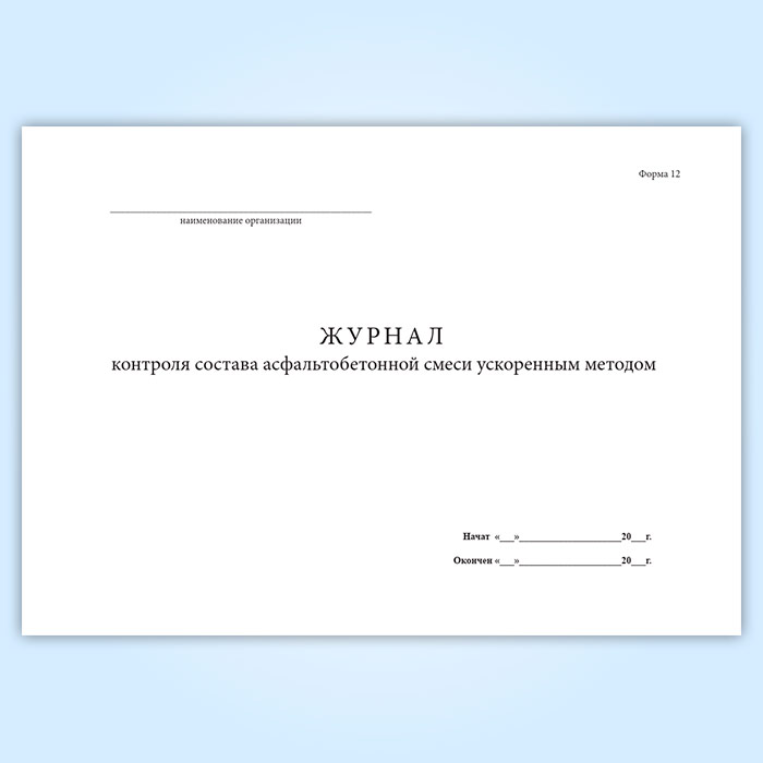 Журнал контроля состава асфальтобетонной смеси ускоренным методом (форма 12) в Бердске купить