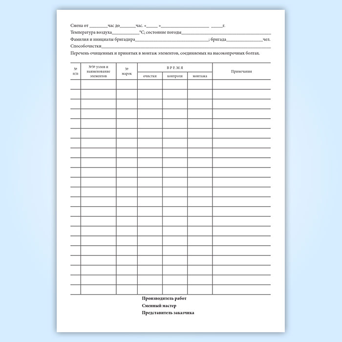 Журнал контроля качества очистки элементов стальных мостовых конструкций с соединениями на высокопрочных болтах в Бердске купить