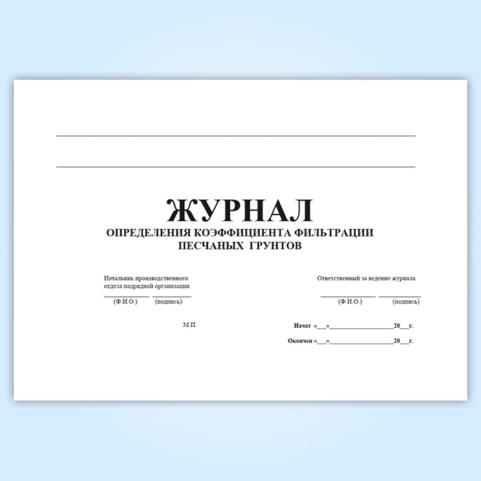 Журнал определения коэффициента фильтрации песчаных грунтов в Бердске купить