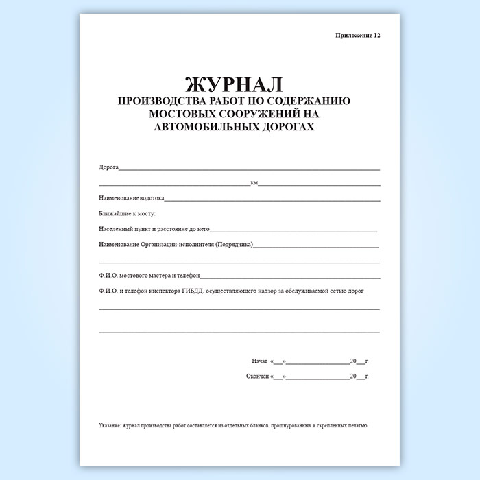 Журнал производства работ по содержанию мостовых сооружений на региональных автомобильных дорогах в Бердске купить