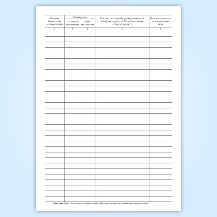 Журнал по эксплуатации и техническому обслуживанию систем вентиляции в Бердске купить