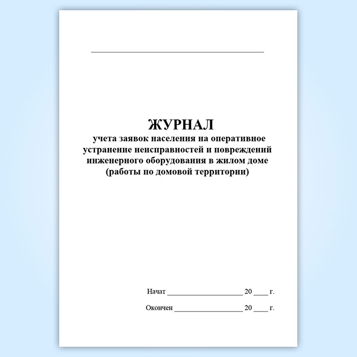Журнал учета заявок населения на оперативное устранение неисправностей и повреждений инженерного оборудования в жилом доме (работы по домовой территории) в Бердске купить