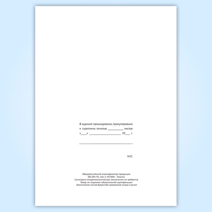 Вы получаете печатную продукцию прошнурованной и c местом для вашей печати в соответствии с действующими нормативными документами: