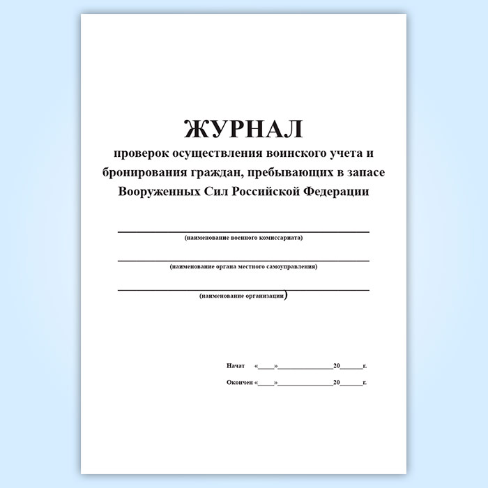 Журнал проверок осуществления воинского учета и бронирования граждан, пребывающих в запасе Вооруженных Сил Российской Федерации в Бердске купить