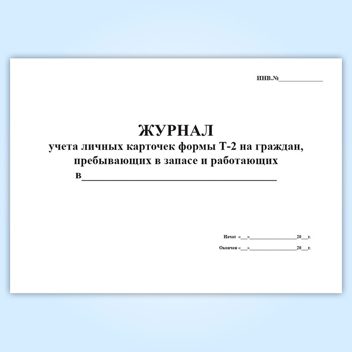Журнал учета личных карточек формы Т-2 на граждан, пребывающих в запасе и работающих в Бердске купить