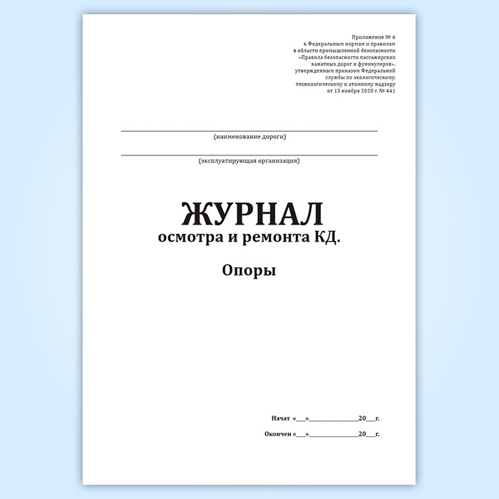 Журнал осмотра и ремонта канатной дороги. Опоры (форма № 6) в Бердске купить