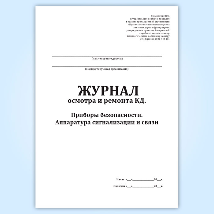 Журнал осмотра и ремонта канатной дороги. Приборы безопасности. Аппаратура сигнализации и связи (форма № 9) в Бердске купить