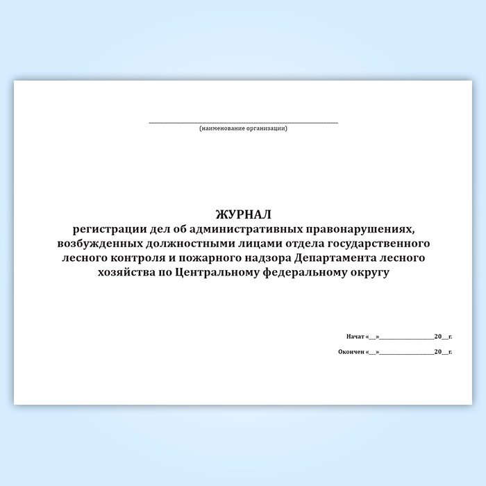 Журнал регистрации дел об административных правонарушениях, возбужденных должностными лицами отдела государственного лесного контроля и пожарного надзора Департамента лесного хозяйства по Центральному федеральному округу в Бердске купить