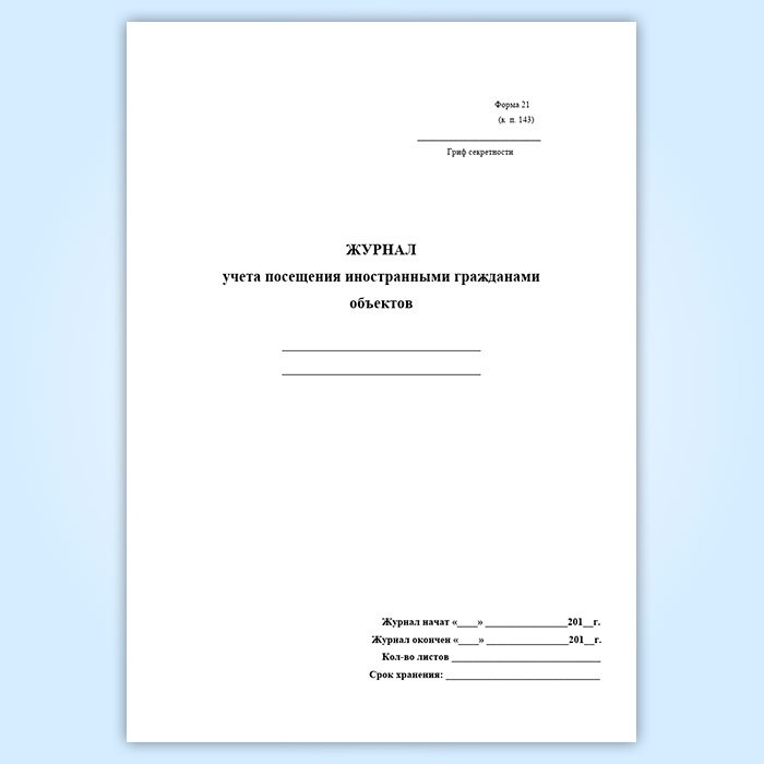 Журнал учета посещения иностранными гражданами объектов (форма 21) в Бердске купить