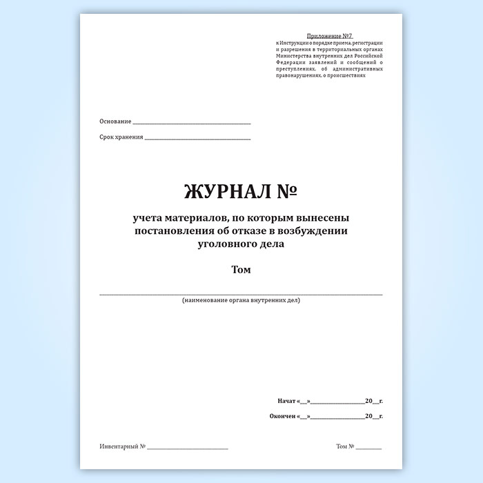 Журнал учета материалов, по которым вынесены постановления об отказе в возбуждении уголовного дела в Бердске купить
