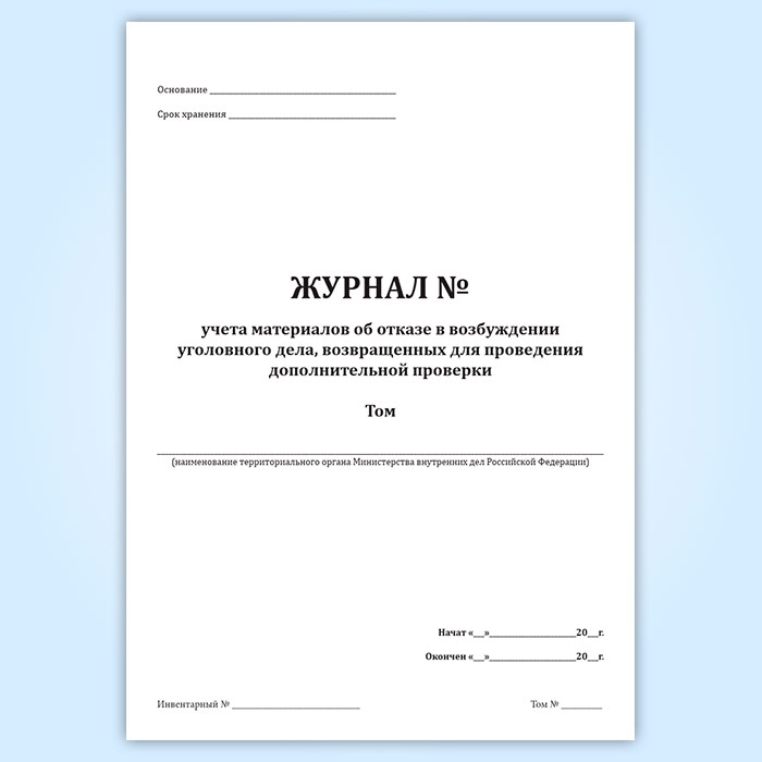 Журнал учета материалов об отказе в возбуждении уголовного дела, возвращенных для проведения дополнительной проверки в Бердске купить