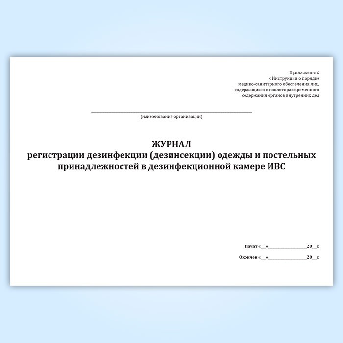 Журнал регистрации дезинфекции (дезинсекции) одежды и постельных принадлежностей в дезинфекционной камере ИВС в Бердске купить